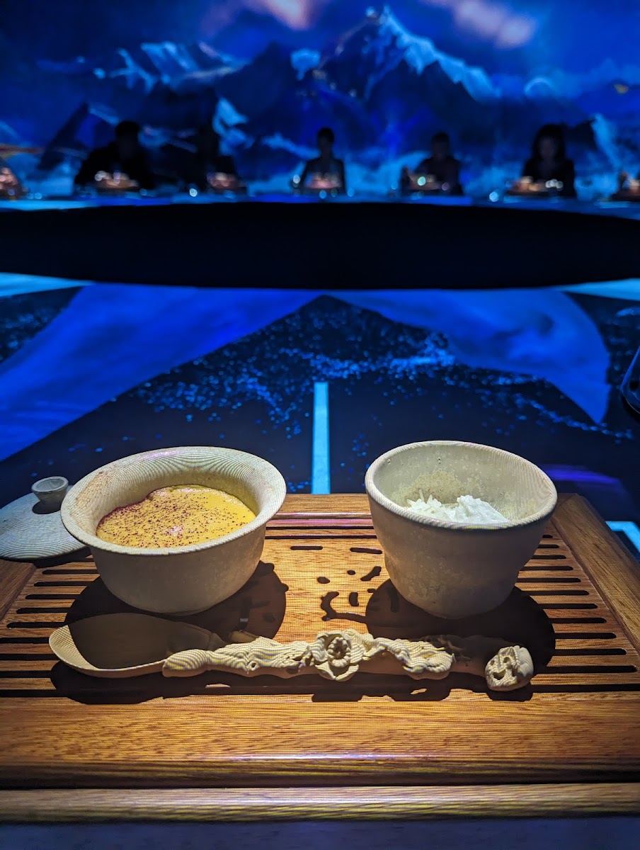 Amazing expierience with the art show filed with light and stories...amazing food We didnt eat and were very hungry when we came we were full by the end of the experience!! It is yummy food and a great show Recomended!!! Once in a lifetime
