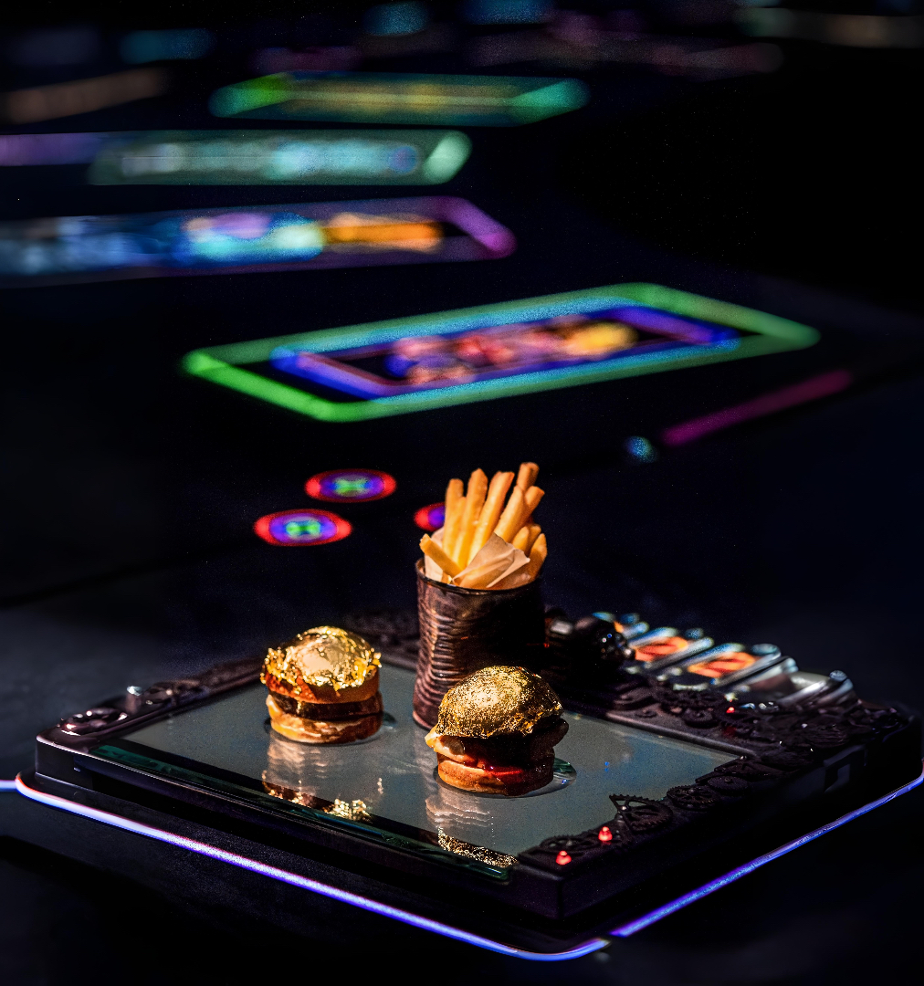 The mood here drifts gently between contemplative and celebratory, guided by immersive projections that swirl around the room, painting stories of art, history, and imagination. The pace of the evening encourages curiosity, with each moment designed to engage the senses thoughtfully, allowing diners to savor not just the food but the narrative it carries.