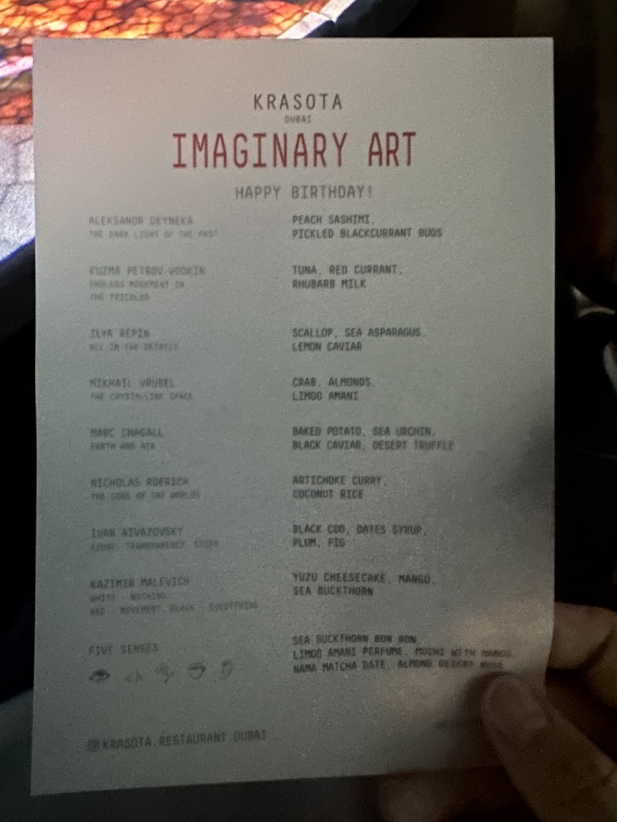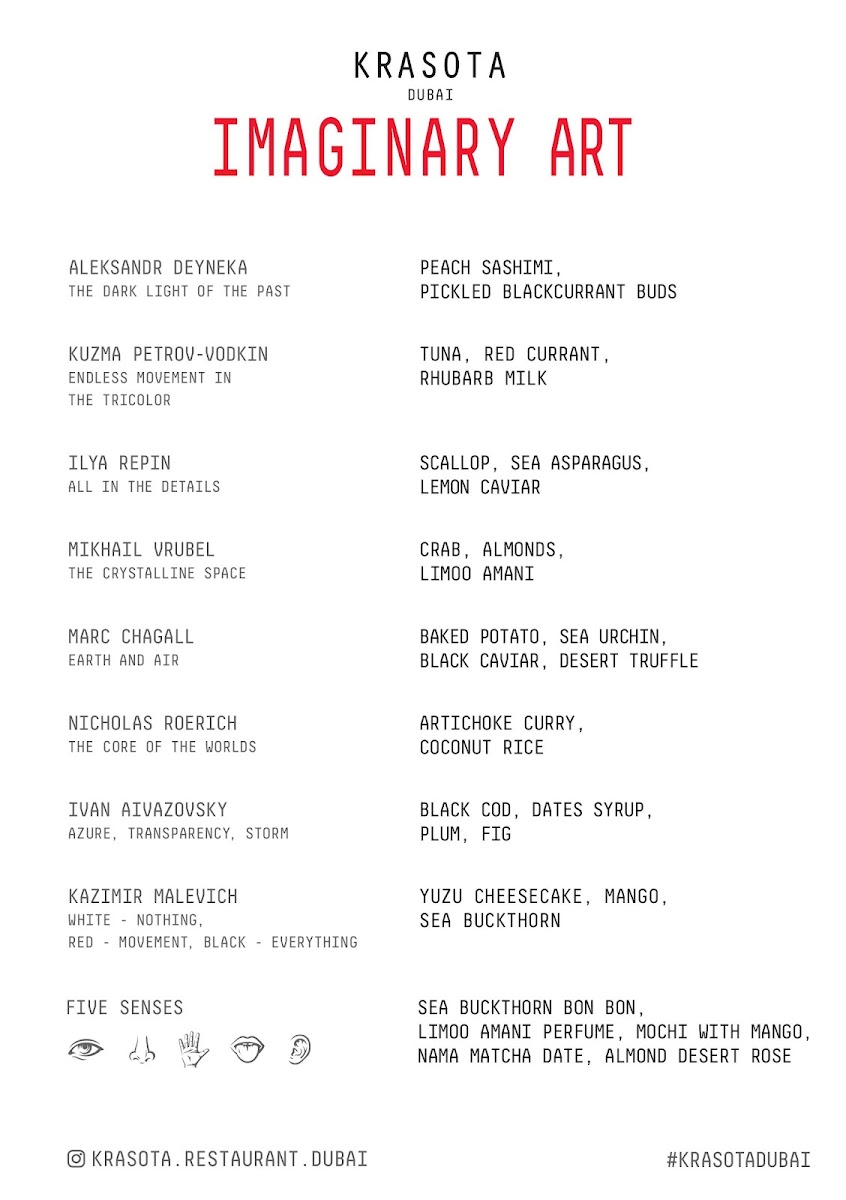 The menu at Krasota Dubai Restaurant offers a thoughtfully curated fine dining experience that blends modern European and French influences with a focus on seafood and plant-based options. Rather than a traditional à la carte layout, guests navigate thematic multi-course tasting menus that take inspiration from art, history, and imaginative storytelling.